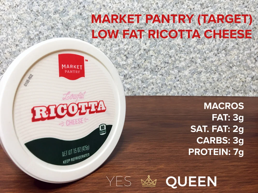 So I tend to buy Trader Joe's fat free ricotta, but I would focus more so on the macros than the brand. One of the reasons why I love Trader Joe's fat free ricotta (besides it being right near my house #realtalk) is that it gives you 6 grams of protein per serving (1/4 cup), and only 4 grams of carbs. So using a cup of it would get you 24 g of protein!