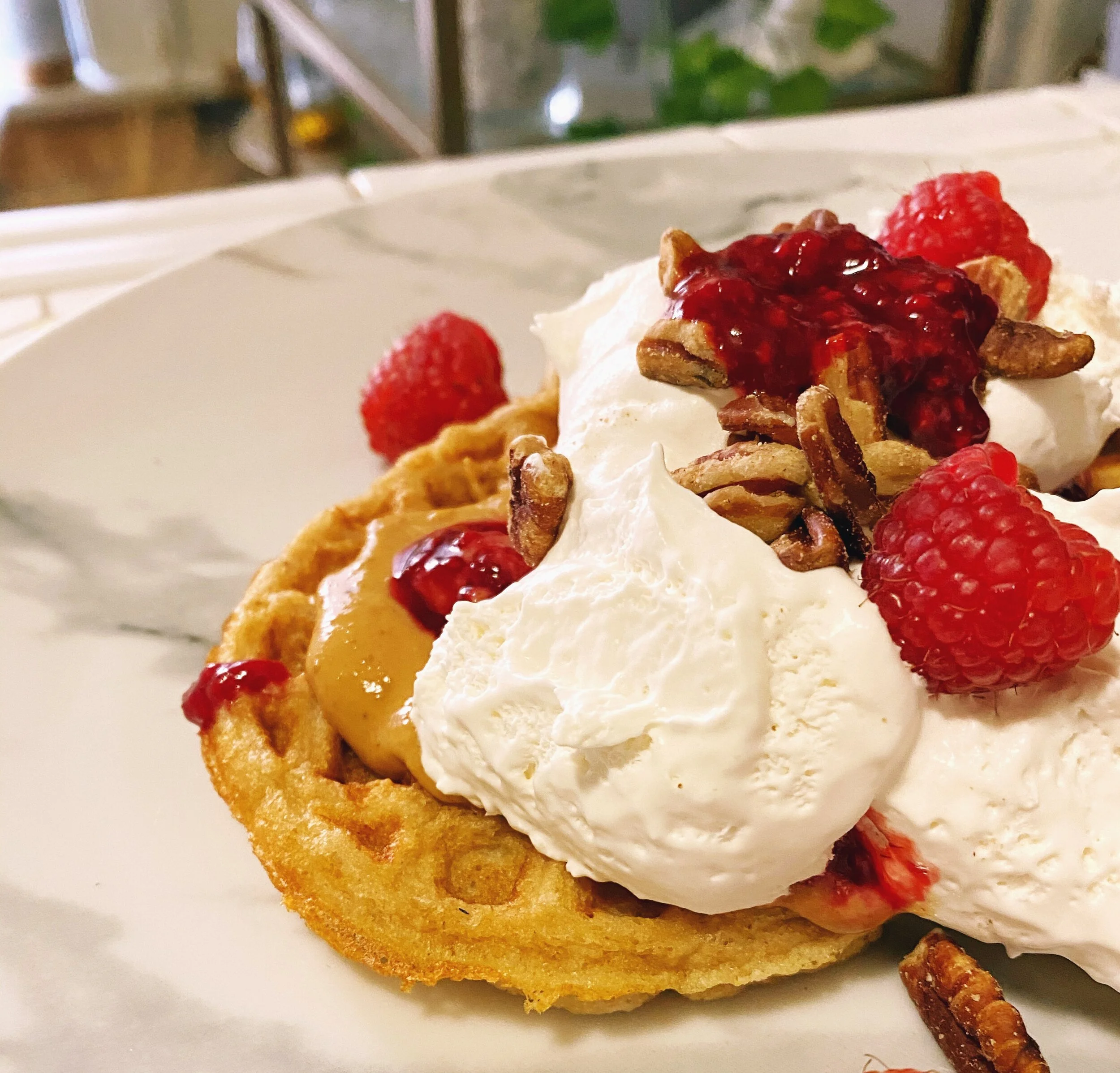 So, this week, while enjoying the new mini waffle maker I got for Christmas from bae, I figured out a way to revive the classic flavor combination I loved so much in my childhood while also boosting up the nutritional value. Queens, may I present to you my Peanut Butter and Jelly Protein Waffles!